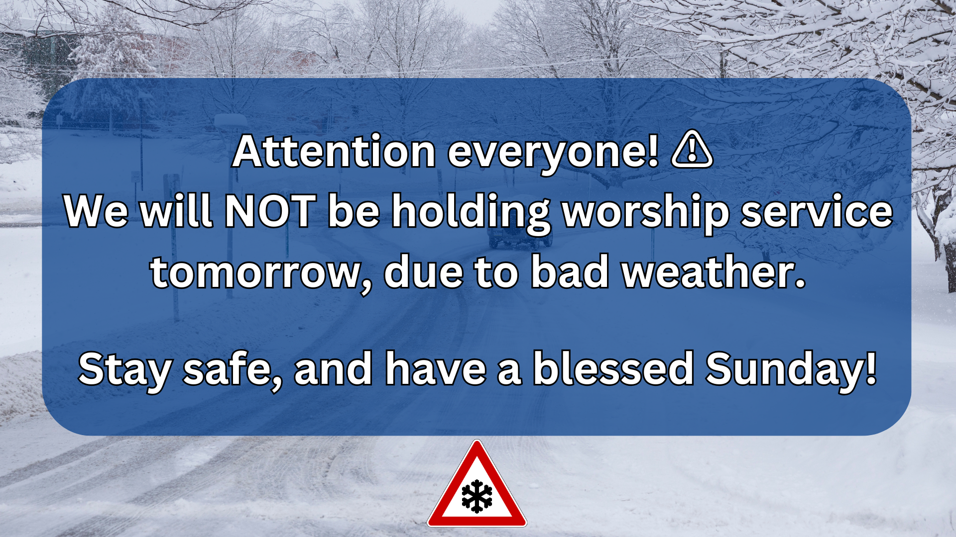 Snow Church Closure Warning – Tomorrow Posted on January 18, 2025January 18, 2025 by ccobadmin ← Previous Next →