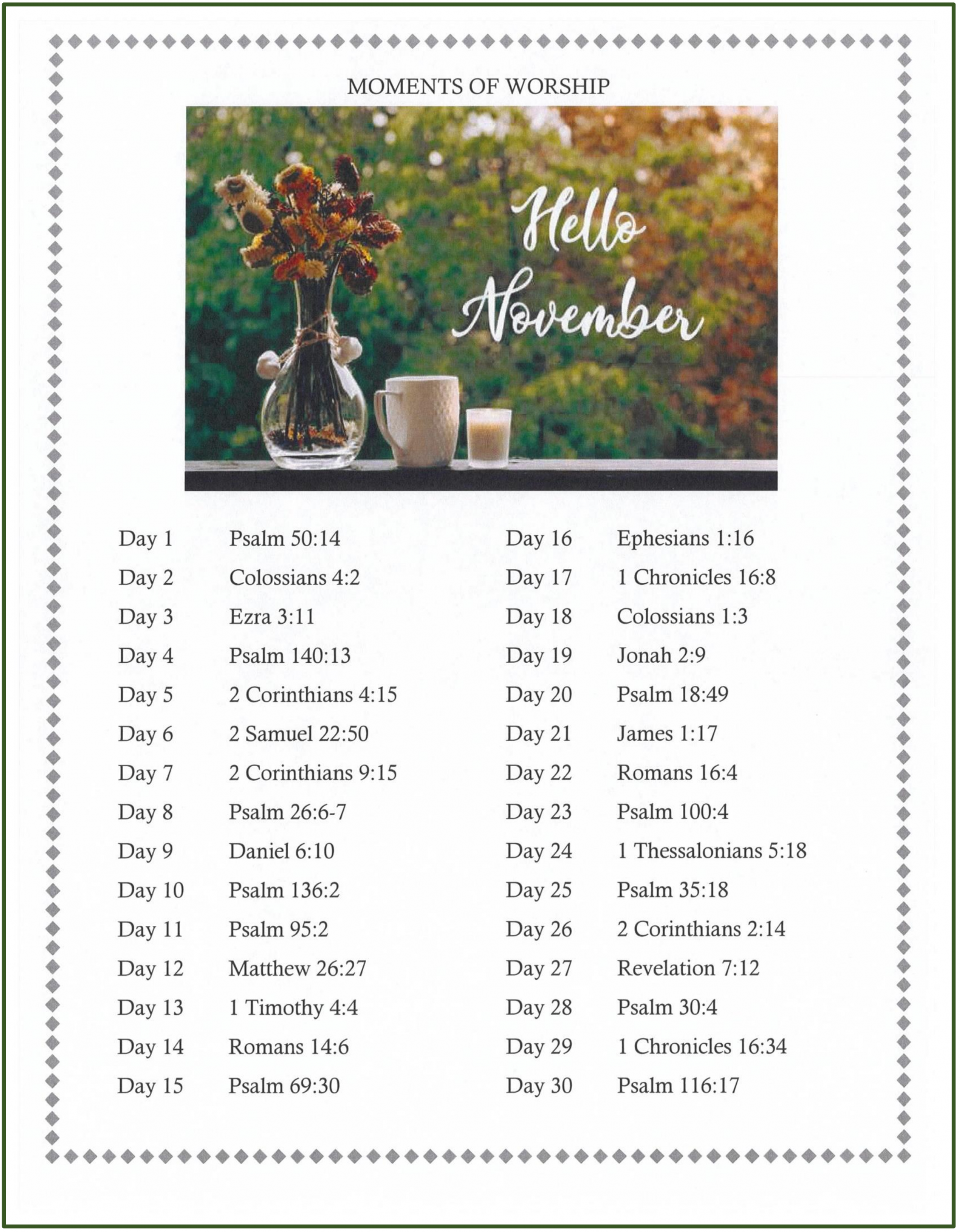 November 2025 Pastor’s Pen Scripture List Posted on October 22, 2025October 22, 2025 by ccobadmin ← Previous Next →