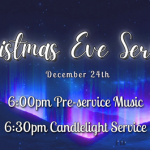 “Refresh and Renew: R&R in Christ” is a ministry led by Pastor Liz via Zoom on Wednesday mornings beginning at 9:00 a.m. This is a time of quiet reflection, scripture reading, and sharing – a time to slow down from our busyness and be quiet in the presence of God. Please contact Liz at the church office (717- , ...Christmas Eve Service6:00 pm