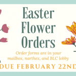 It’s time to order Easter Flowers! Order forms are available in your church mailbox, Narthex and Brethren Life Center Lobby. You have a choice of: Tulips, $11.00; Hyacinths, $11.00; Mini Daffodils, $11.25; and Easter Lily- $13.50. Orders with payment are due by Sunday, February 22, 2026. Place orders in the baskets pro , ...